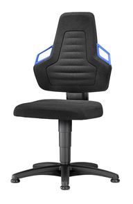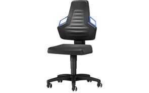 Arbetsstol Bimos Nexxit. Denna bekväma arbetsstol med permanentkontakt står för en imponerande komfort och ergonomi. Det extra stora ryggstödet har både svankstöd och vadderade dynor för maximal sittkomfort och ett optimerat mikroklimat. Lutning och höjd kan anpassas efter individuella behov. Ryggstödet som smalnar av uppåt har integrerade handtag, vilket möjliggör flexibelt arbete och smidig för förflyttning.