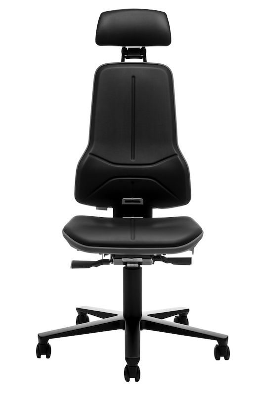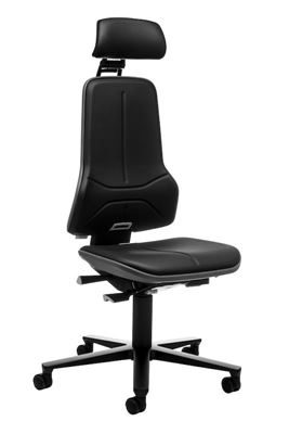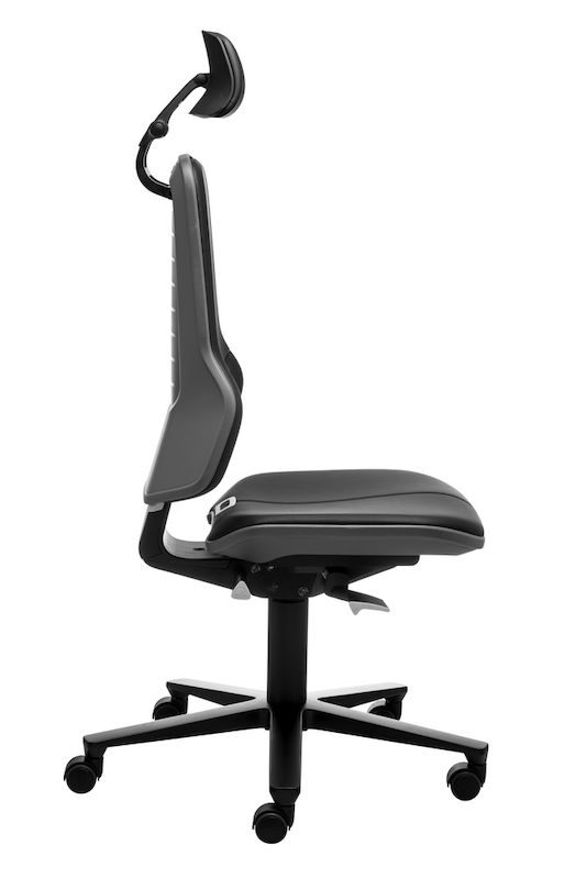 Arbetsstol Ela, synkrongunga, konstläder, flexband grått. Denna flexibla arbetsstol är idealisk för dator-, installations- och kontrollarbetsplatser. Höjd, djup och lutning på nackstödet kan ställas in bekvämt medan man sitter. Nackstöden med mjuk stoppning och konstläderklädsel är avtorkningsbara och lätta att rengöra. Den generösa stoppningen ger hög sittkomfort och det ergonomiskt utformade ryggstödet ger maximal rörelsefrihet. Ett flexband skyddar både stolen och omgivningen.