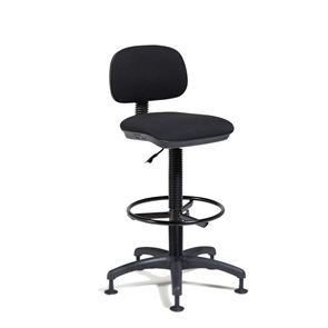 Arbetsstol Potos. En stabil höj- och sänkbar arbetsstol klädd i tyg med enkel och funktionell mekanism. Stolen levereras med glidfot och fotring.