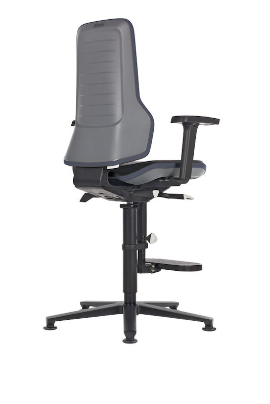 Arbetsstol med permanentkontakt och ergonomipaket. Höjdinställning med gasfjäder från 590–870 mm. Svart kryssfot i aluminium med hjul. Fotens diameter är 700 mm. Inställbar sitsvinkel 0 till +9°.