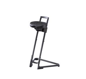 Ståstol Johannes. Denna stol har en sits av robust och motståndskraftigt PU-skum, ett material som är erkänt uthålligt och lättskött. Sitsen kan svängas 16° och har en återställningsfunktion som automatiskt för tillbaka den till ursprungsläget. Sitslutningen kan ställas in 15° för en ergonomisk anpassning till användarens sittställning.
