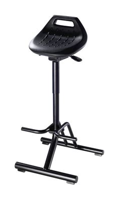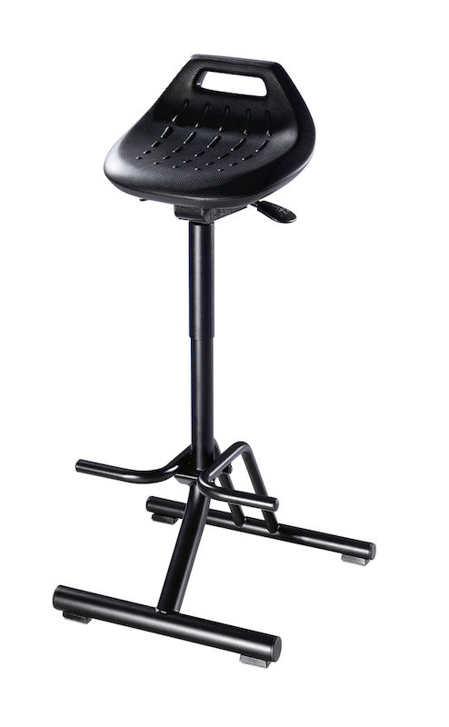 Ståstol Nea, med fällbart fotstativ och fotstöd, sits vridbar 360°. Industristolen är utrustad med trumpetfot och passar för arbetsmiljöer med höga krav på