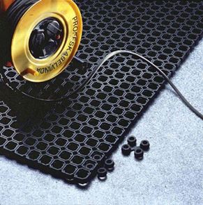 Tillverkad av 100% naturgummi med öppen botten. Anpassad till både torr och fuktig miljö, inomhus som utomhus. Öppen ringkonstruktion i moduler som kopplas samman, gör att smuts och vätska samlas effektivt, och behöver du städa under mattan går det enkelt att lyfta upp modulen och sätta den på plats igen.