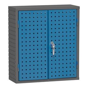 Perforerat verktygsskåp anpassad för påbyggnader c/c 900 mm. Grått skåp med blå dörrar. Påbyggnad Mimer bygger på ställ för enkel- eller dubbel-sidig montering. Tillsammans med hyllplan, upphängningsskenor, verktygsskåp, paneler och backar skapar du snabbt en ändamålsenlig förvaringsplats eller arbetsenhet.