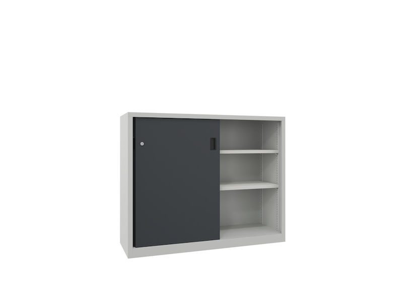 Det här funktionella metallskåpet kombinerar platsbesparande design med hållbar kvalitet och skapar därmed tillförlitlig ordning i professionella arbetsmiljöer. I synnerhet på platser där utrymmet måste utnyttjas effektivt är skjutdörrsskåpet en genomtänkt och stabil lösning.