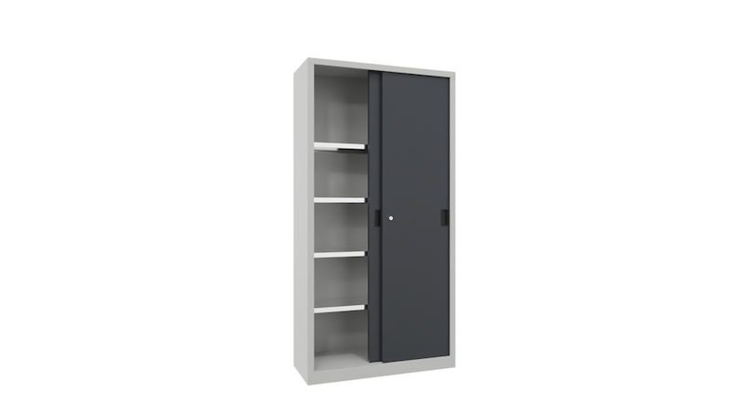 Det här funktionella metallskåpet kombinerar platsbesparande design med hållbar kvalitet och skapar därmed tillförlitlig ordning i professionella arbetsmiljöer. I synnerhet på platser där utrymmet måste utnyttjas effektivt är skjutdörrsskåpet en genomtänkt och stabil lösning.