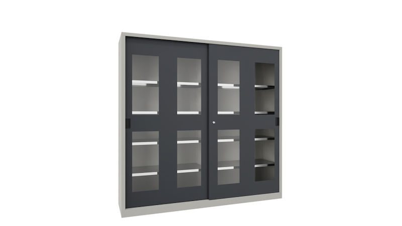 Det här funktionella metallskåpet kombinerar platsbesparande design med hållbar kvalitet och skapar därmed tillförlitlig ordning i professionella arbetsmiljöer. I synnerhet på platser där utrymmet måste utnyttjas effektivt är skjutdörrsskåpet en genomtänkt och stabil lösning.