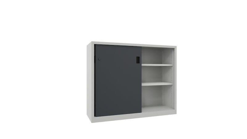 Det här funktionella metallskåpet kombinerar platsbesparande design med hållbar kvalitet och skapar därmed tillförlitlig ordning i professionella arbetsmiljöer. I synnerhet på platser där utrymmet måste utnyttjas effektivt är skjutdörrsskåpet en genomtänkt och stabil lösning.