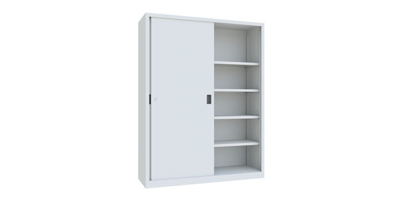 Det här funktionella metallskåpet kombinerar platsbesparande design med hållbar kvalitet och skapar därmed tillförlitlig ordning i professionella arbetsmiljöer. I synnerhet på platser där utrymmet måste utnyttjas effektivt är skjutdörrsskåpet en genomtänkt och stabil lösning.