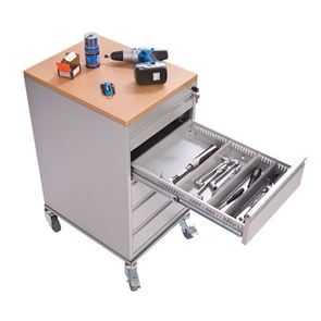 Kraftiga hurts med centrallåsning och kullagrade expander. Lådan är utrustad med en avdelare.